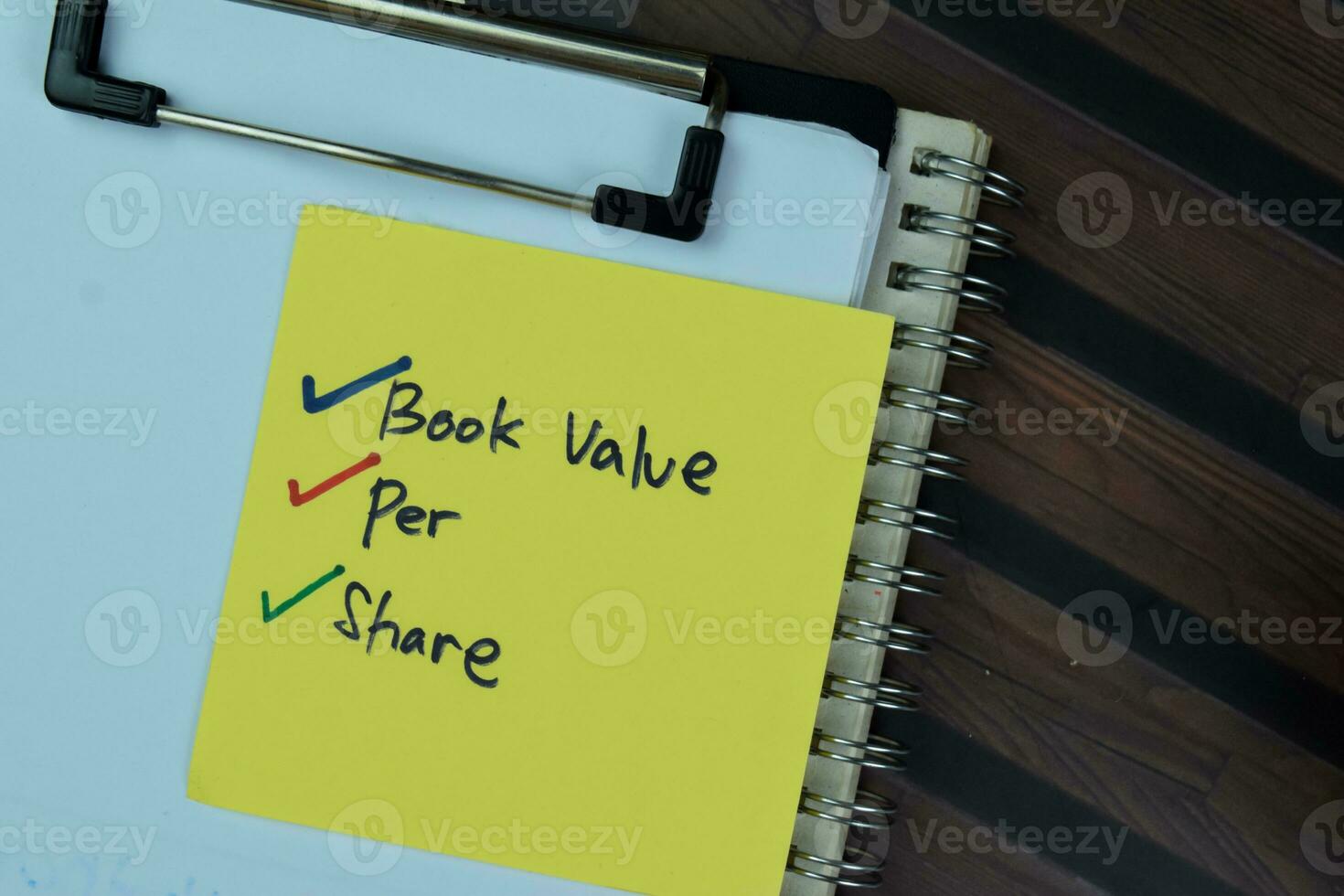 Concept of Book Value Per Share write on a sticky notes isolated on Wooden Table. Pro Photo