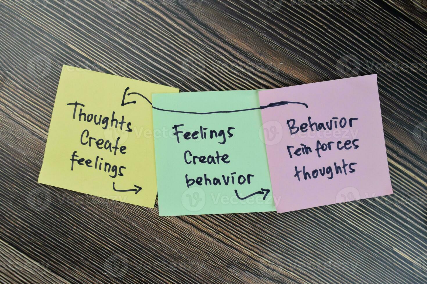 Concept of cognitive behavior theory write on sticky notes isolated on Wooden Table. Pro Photo