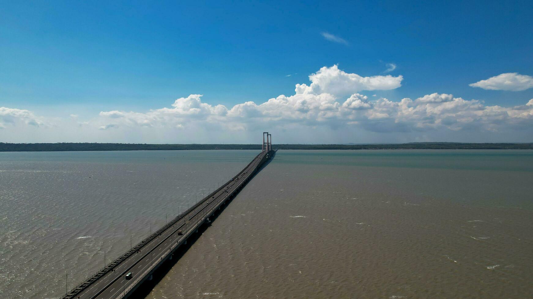 Aerial view of Suramadu bridge connecting islands Java and Madura in East Java. East Java, Indonesia, August 28, 2022 photo