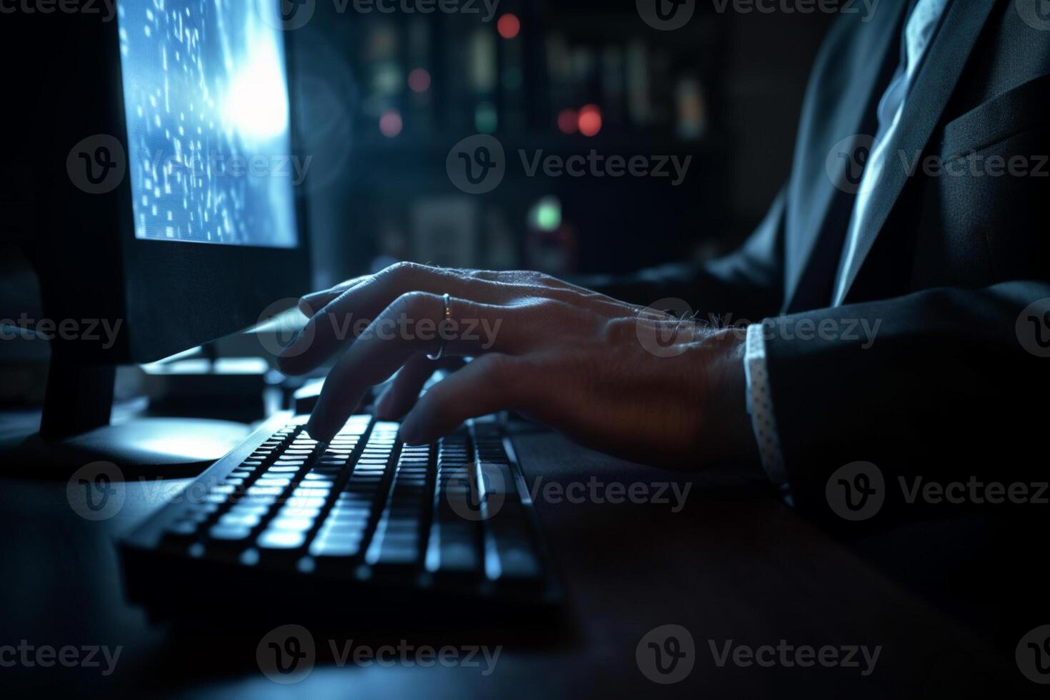 the hands of Businessman pressing on computer screen with Pro Photo