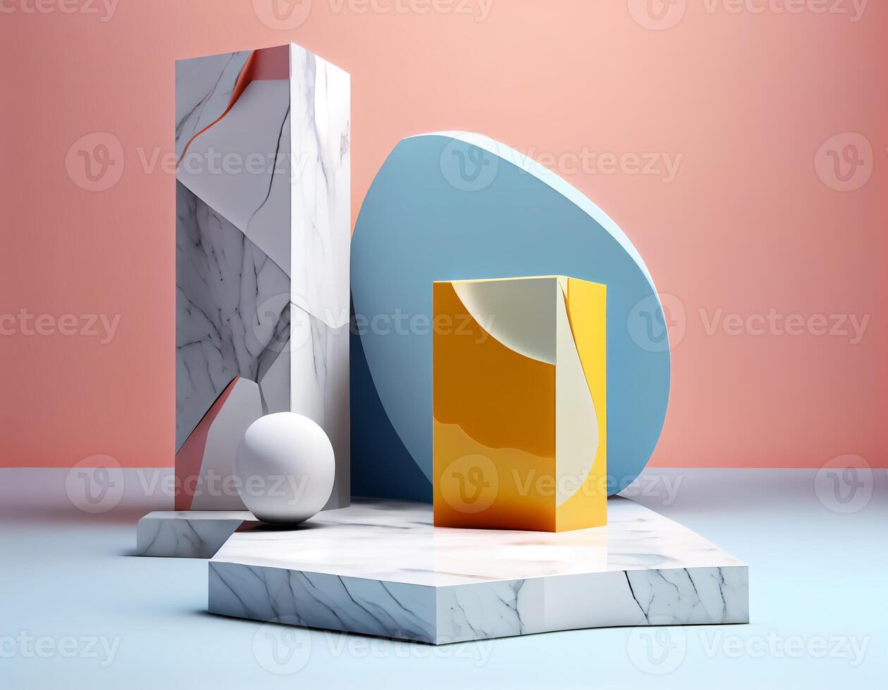 Abstract 3d podium for product presentation with geometric shapes, Empty round podium,Platforms for product presentation with shadows and light background. Pro Photo