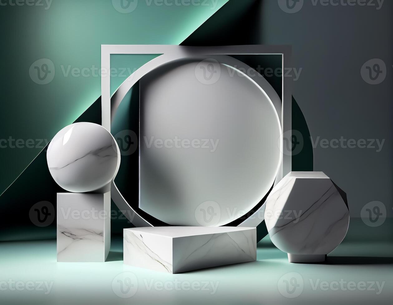 Abstract 3d podium for product presentation with geometric shapes, Empty round podium,Platforms for product presentation with shadows and light background. Pro Photo