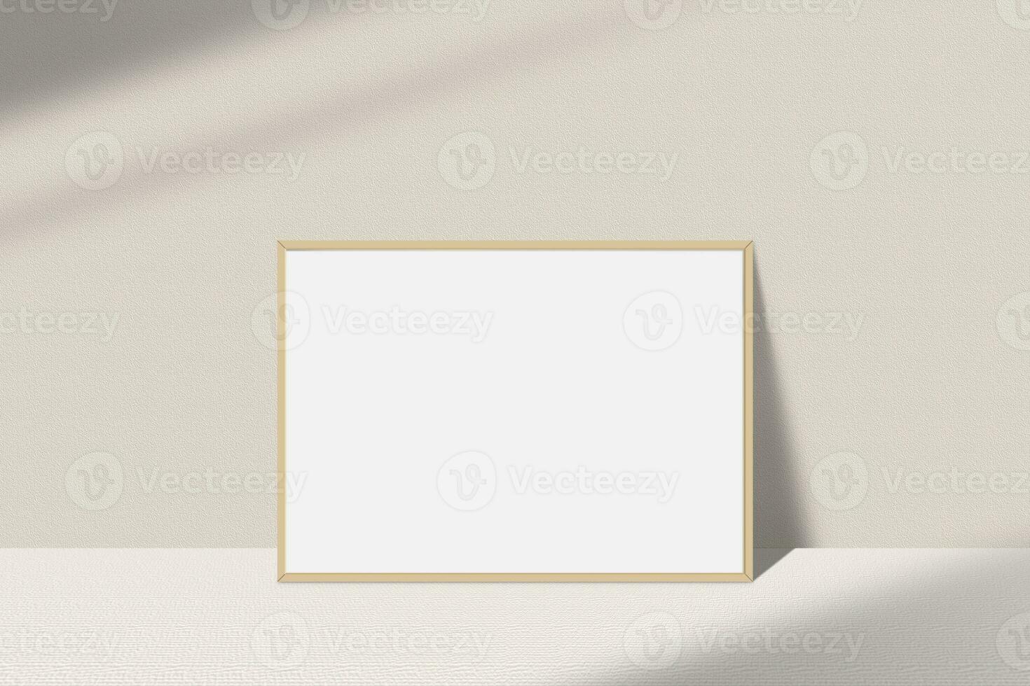 Realistic landscape photo frame mockup. Wooden frame mockup on the table with light window shadow overlay effect. Simple, clean, modern, minimal empty poster frame mock up. White picture frame mockup Pro Photo