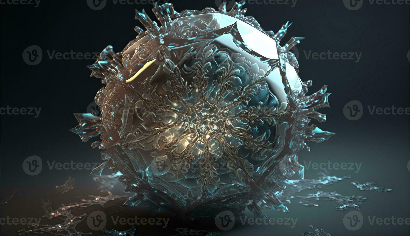 a snowflake virus under the microscope with many details and a unique shape highlighting the complexity of these tiny infectious bacteria. ai generation Pro Photo