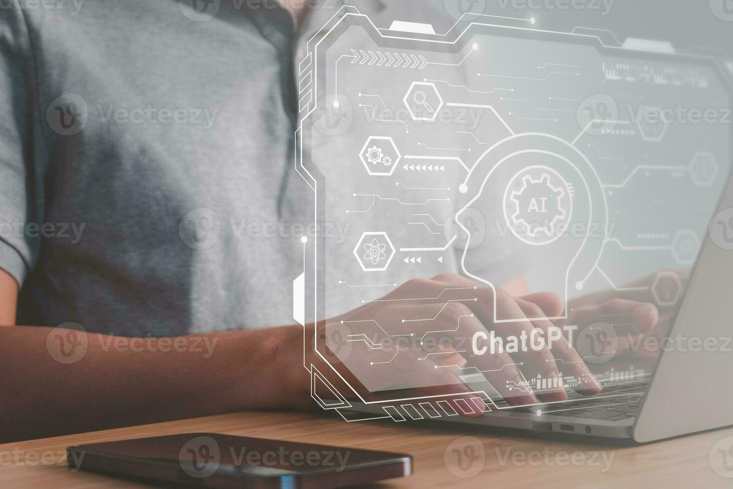 Chatbot name ChatGPT. Digital information technology concept. Businessman typing the laptop asking AI by using conversation. artificial intelligence. Pro Photo