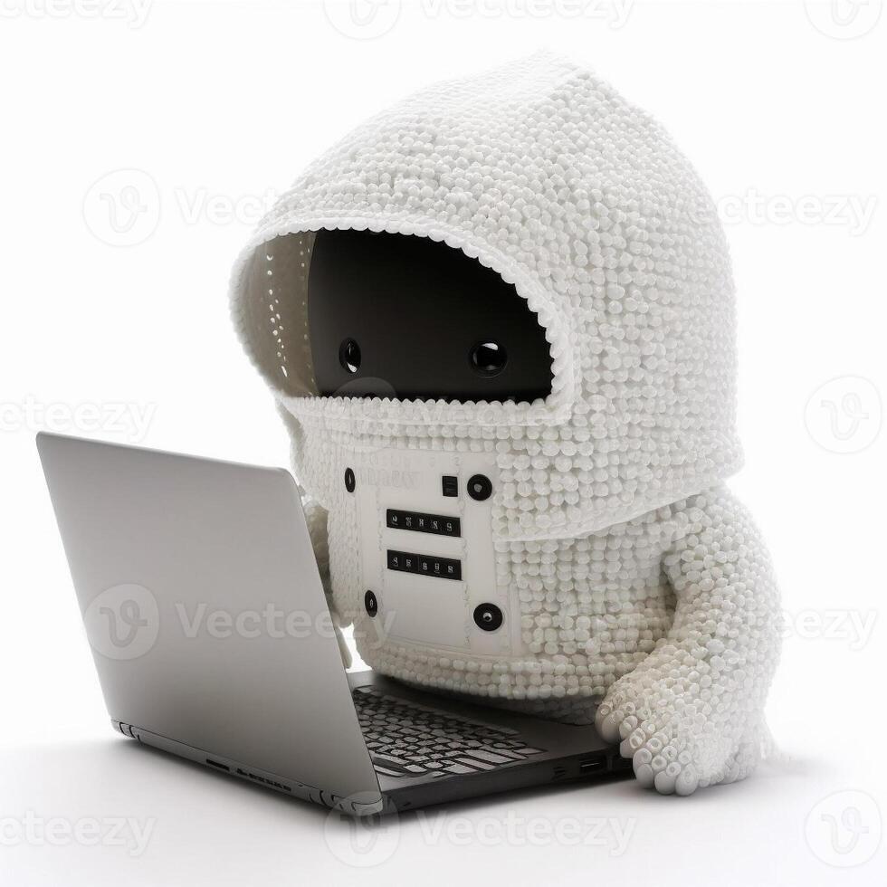 Cute anonymous hacker with white hoodie typing computer laptop. Concept of ethical hacking. Cybersecurity, Cybercrime, Cyberattack. image Pro Photo