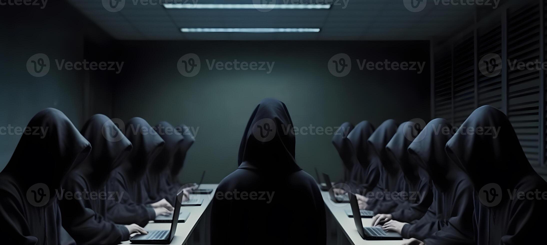 Hackers with hoodies. Hacker group, organization or association. Pro Photo