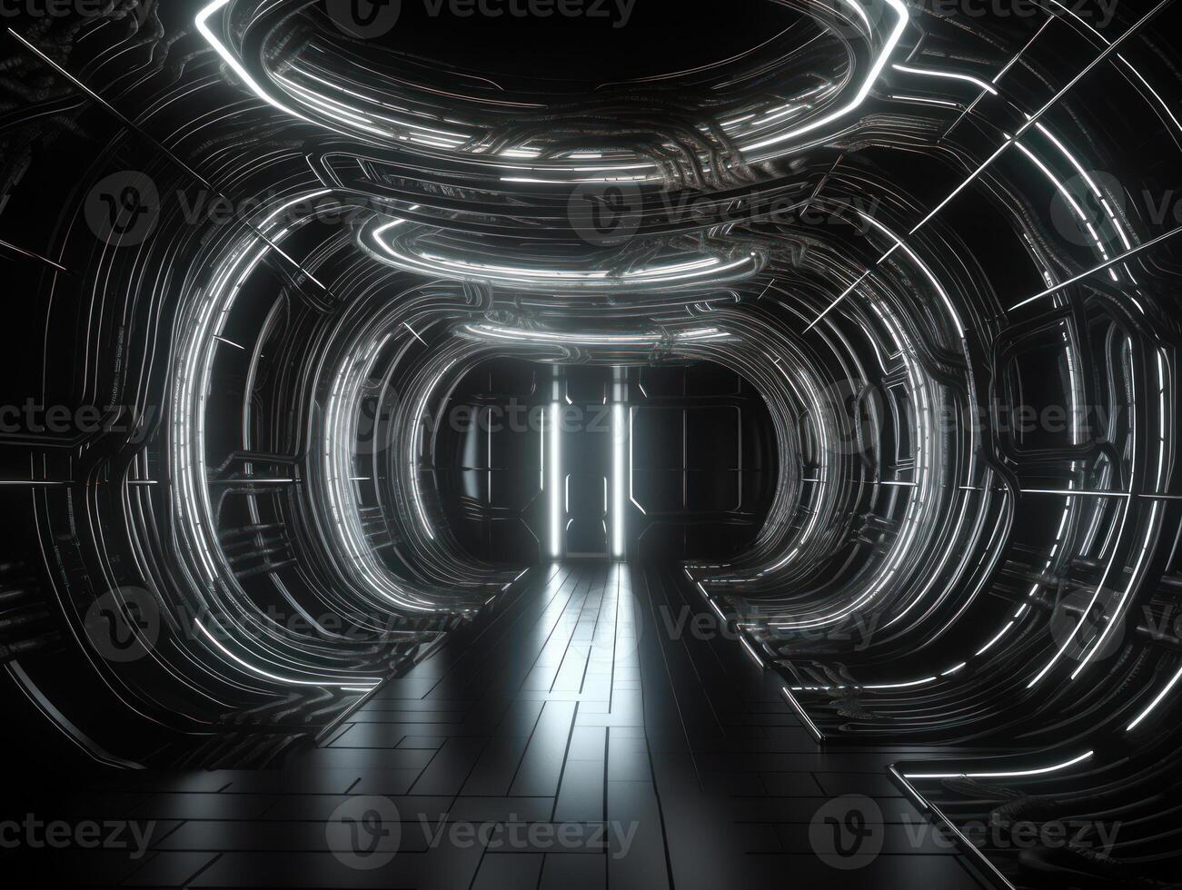 Abstract futuristic tunnel corridor with glowing lights and reflections Science fiction style Created with technology Pro Photo