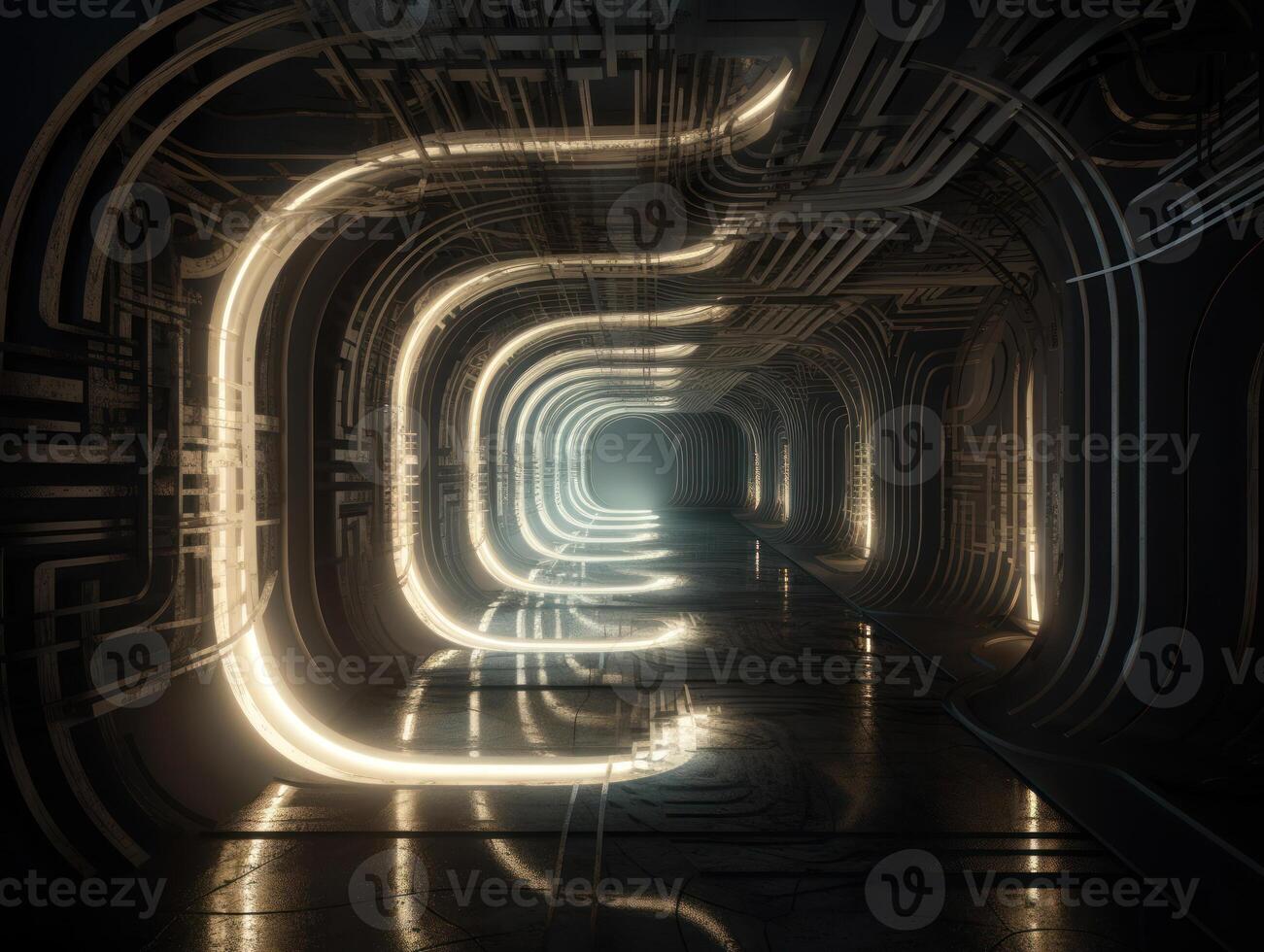 Abstract futuristic tunnel corridor with glowing lights and reflections Science fiction style Created with technology Pro Photo