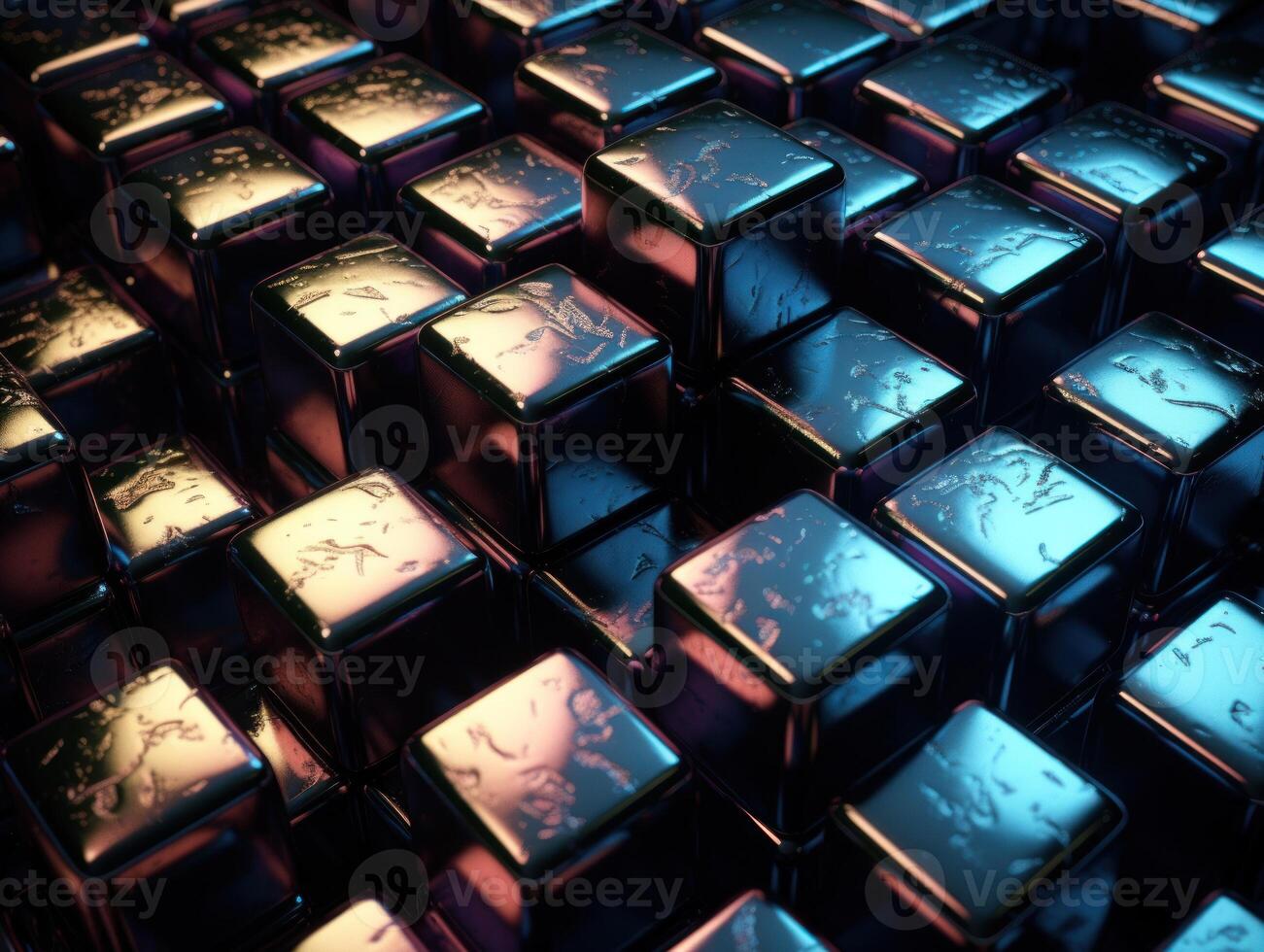 Futuristic metallic cubes background Abstract geometric mosaic grid Square tiles pattern technology Pro Photo