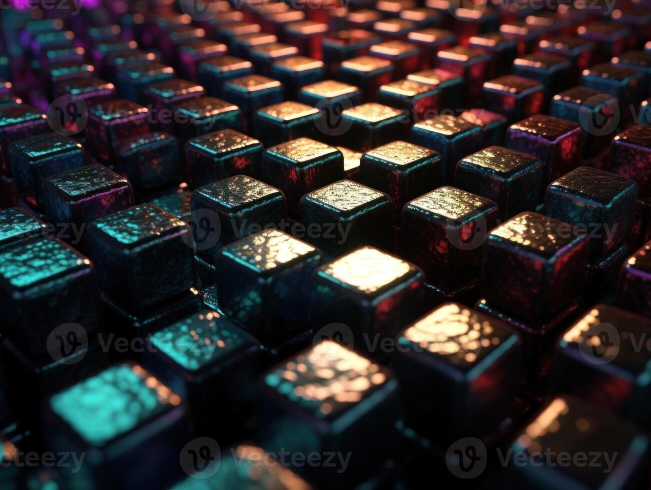 Futuristic metallic cubes background Abstract geometric mosaic grid Square tiles pattern technology Pro Photo