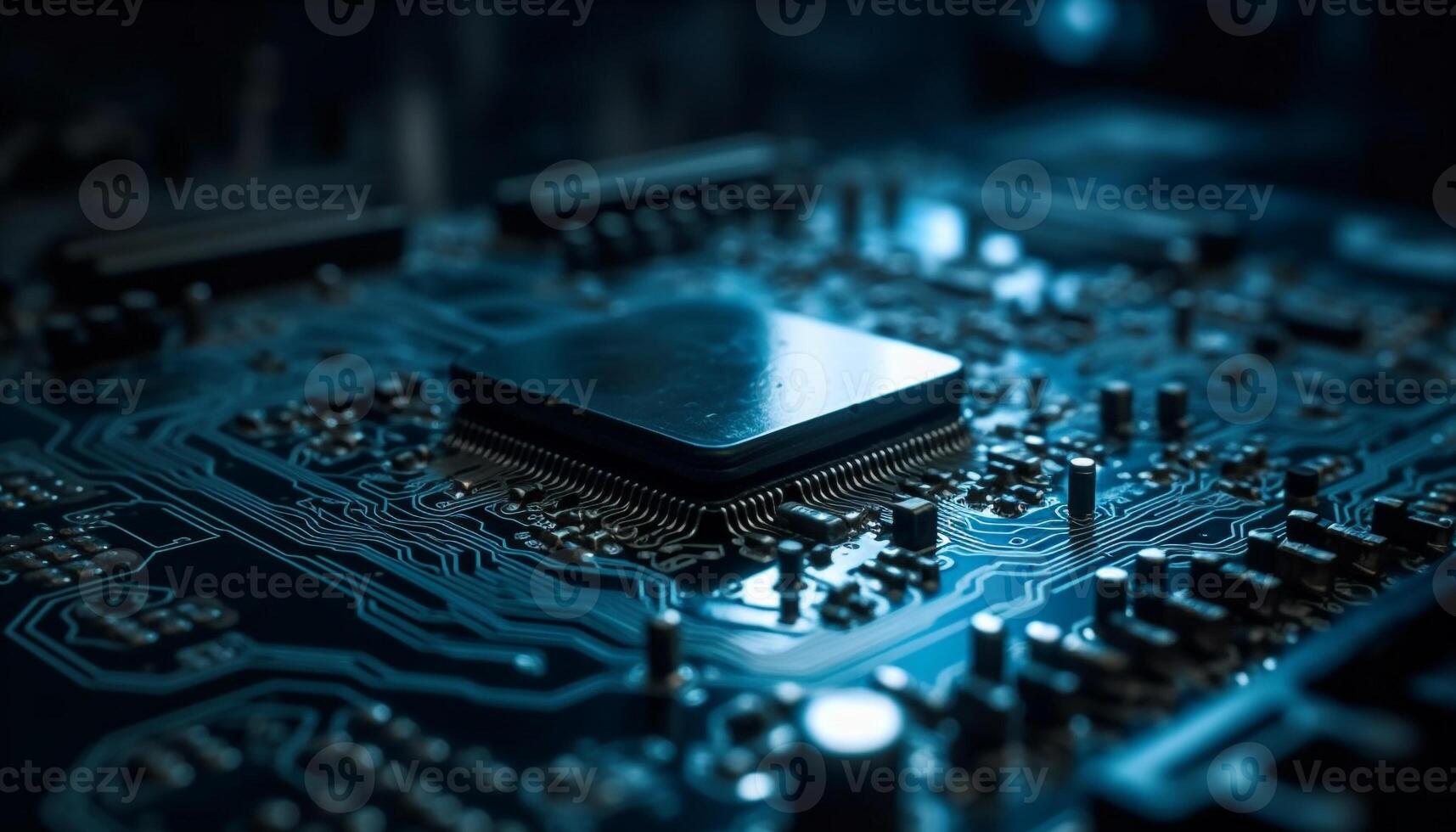 Abstract circuit board with computer chip and transistor connection generated by AI Pro Photo