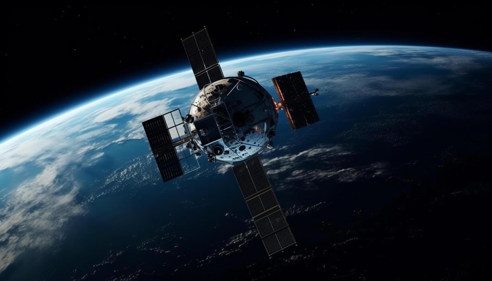 Spaceship orbiting planet, exploring galaxy with advanced technology and science generated by AI photo
