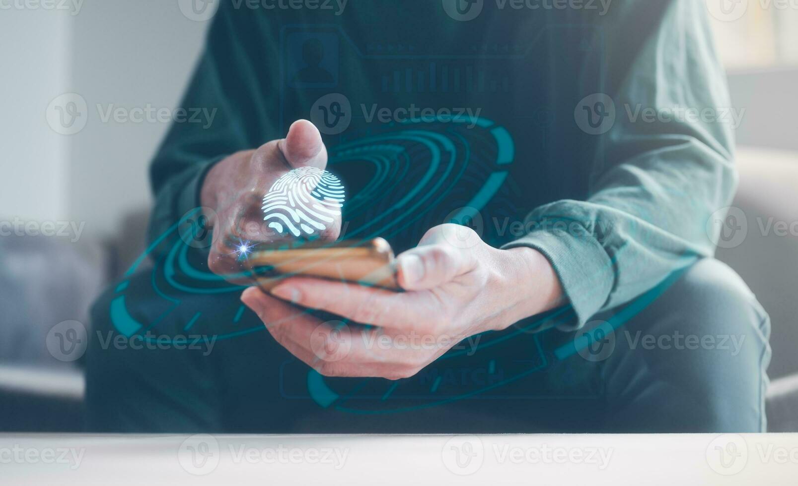 cyber security Fingerprint scanning and biometric authentication, processing of biometric for access personal data. surveillance and security scanning of digital programs cyber futuristic applications Pro Photo