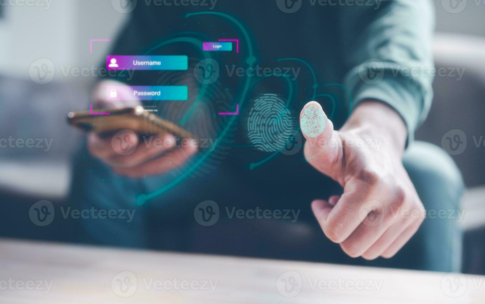 scam safe Fingerprint scanning and biometric authentication, processing of biometric for access personal data. surveillance and security scanning of digital programs cyber futuristic applications Pro Photo