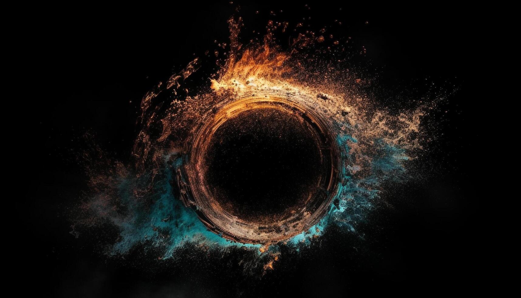 Futuristic spaceship orbits exploding planet in abstract, glowing illustration generated by AI photo