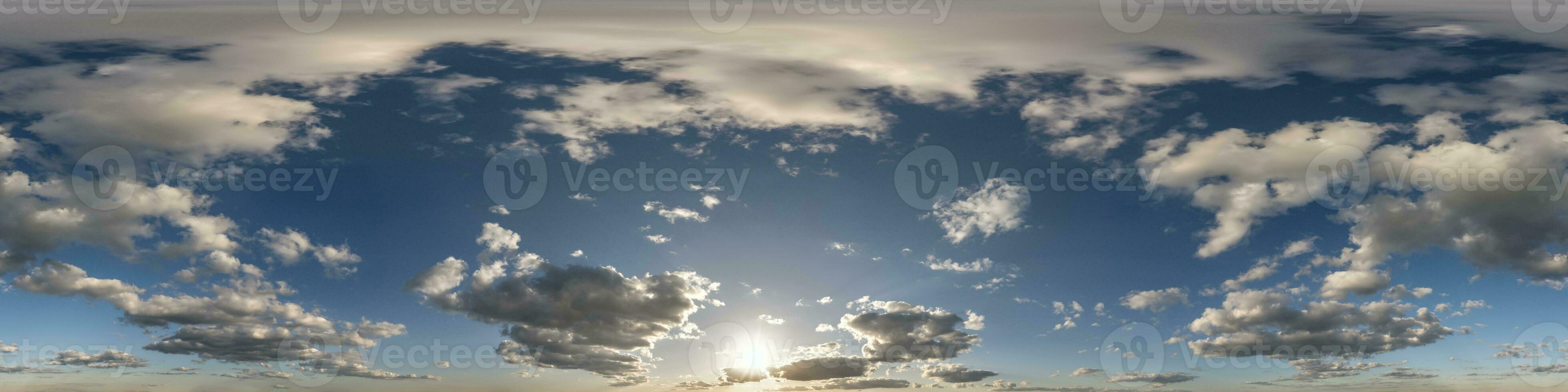 sunset skydome with evening clouds as seamless hdri 360 panorama view in spherical equirectangular format for use in 3d graphics or game development as sky dome replacement or edit drone shot Pro Photo