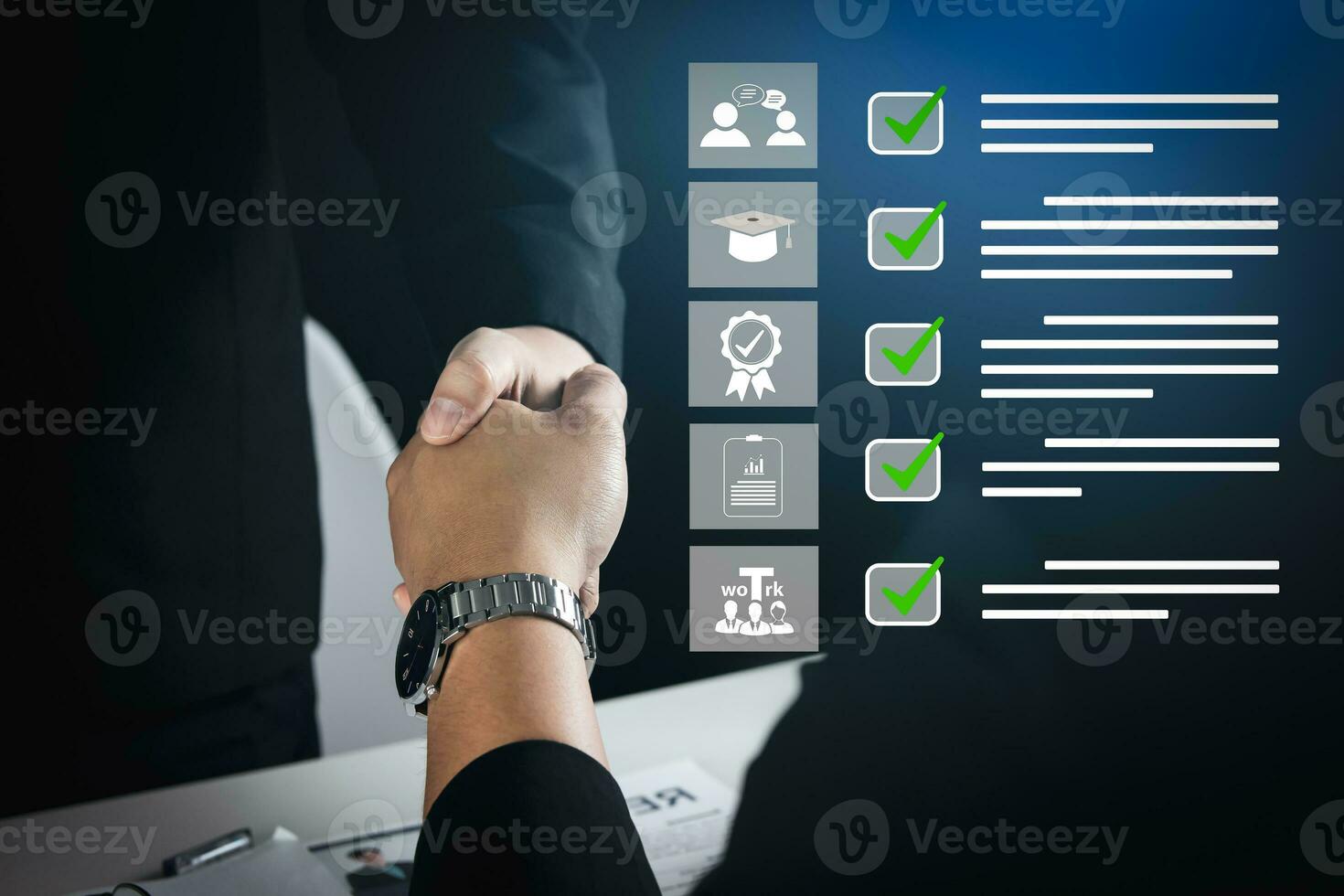 Qualification examination and assessment of job seeker skills and abilities. HR Manager job interview hiring to work in the company. concept of recruitment, job interview teamwork, education Pro Photo