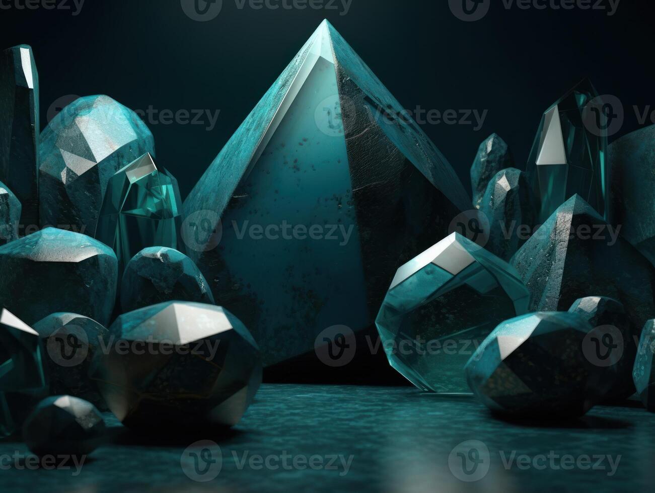 Dark cyan and gold, crystal and marble, geometrical primitives pattern, abstract background created with technology. Pro Photo