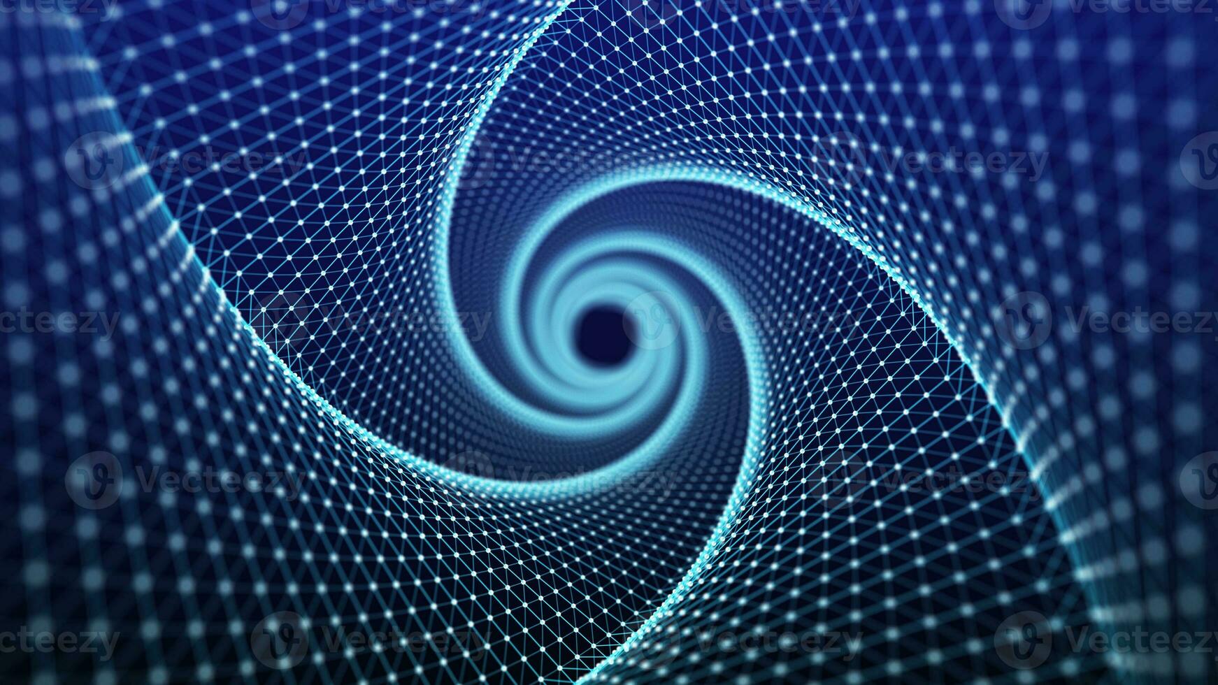 A frame twisted tunnel made of a connection of blue dots and lines. Network connection. The structure of big data. Data transmission technology. 3d rendering Pro Photo