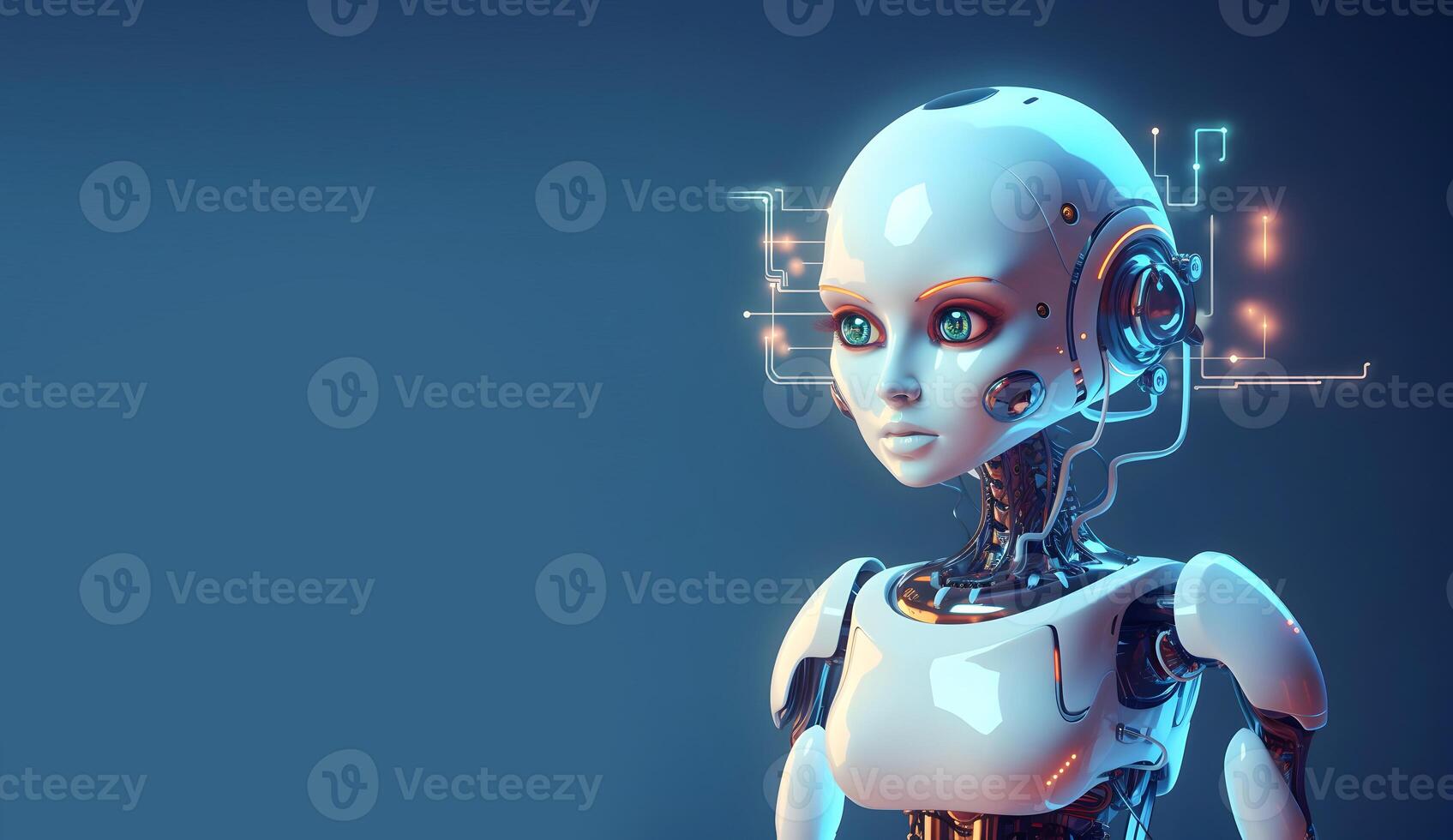 Robot with data information. Concept of chatbot or ai assistant. Pro Photo