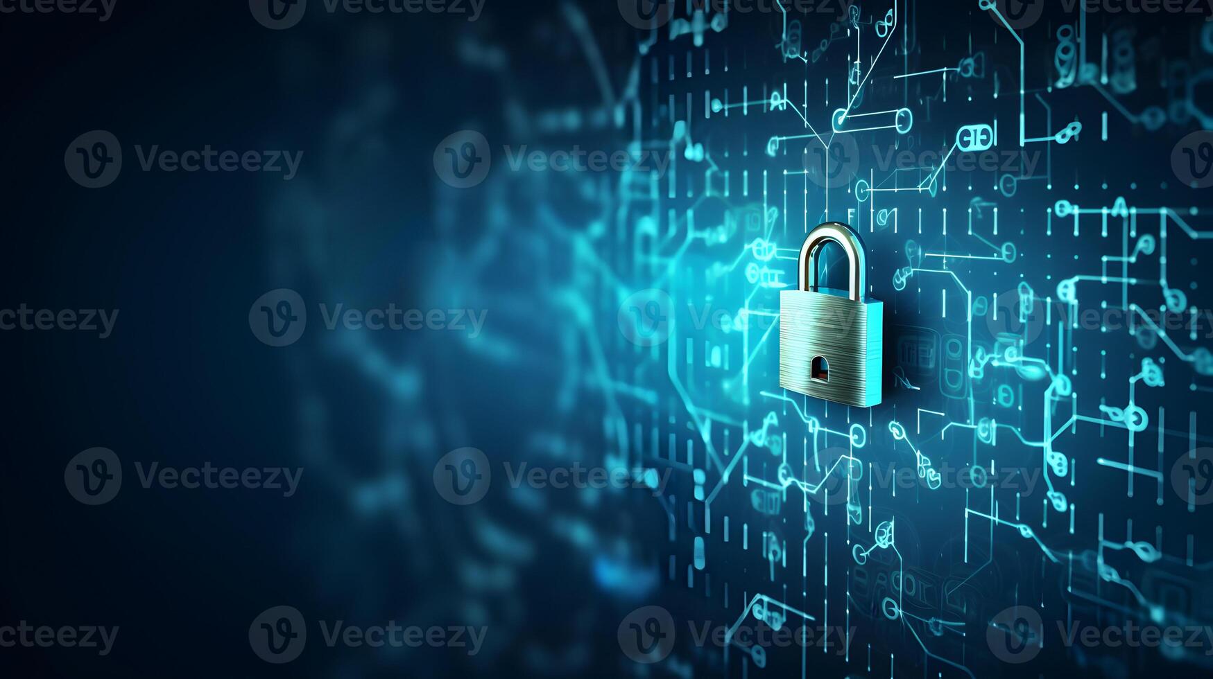 Lock on circuit pattern. Concept of data security and cybersecurity. Pro Photo