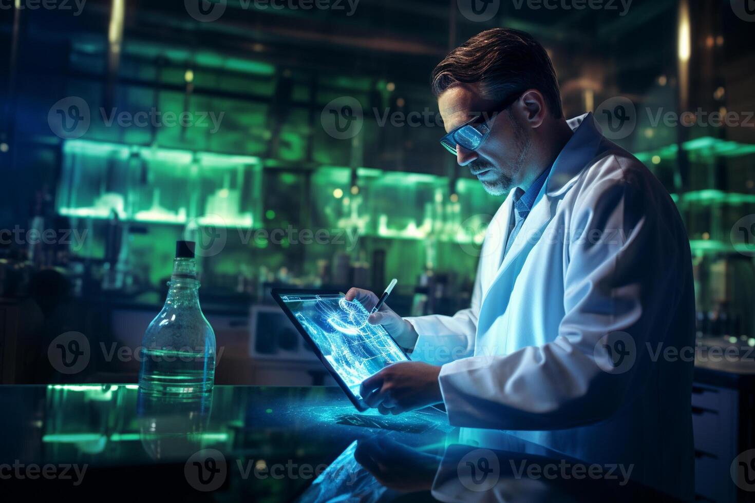 a chemistry lab man with tablet in the laboratory with Pro Photo