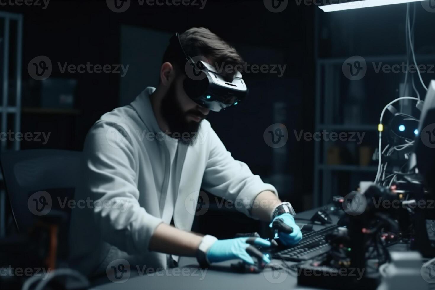 device man future innovation glasses robot virtual 3d technology three-dimensional engineer robotic. . Pro Photo