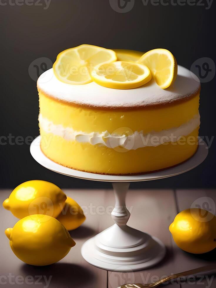 3D Rendering Realistic Lemon Cake With Lemons. Pro Photo