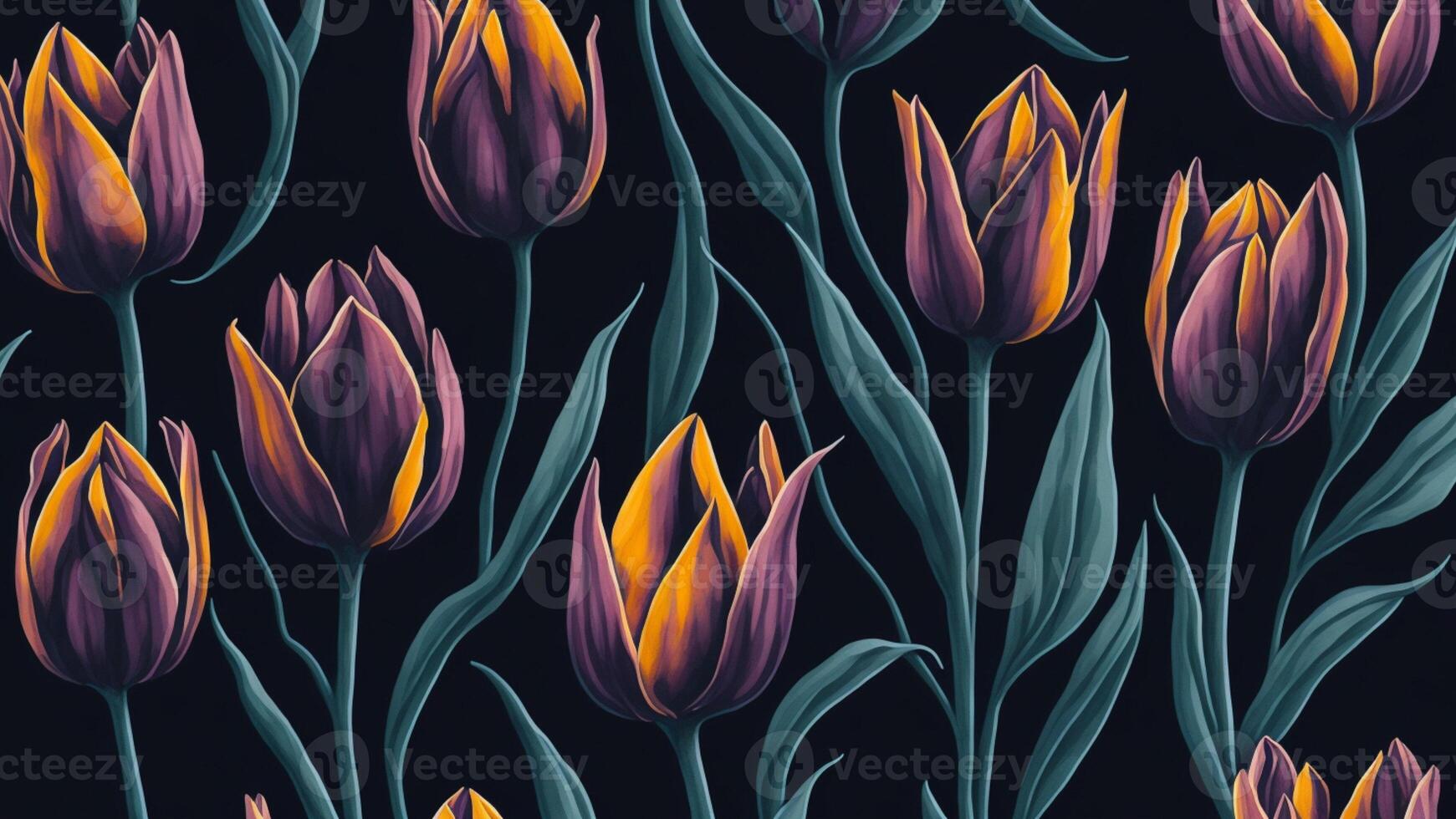 beautiful Gradient red and yellow color tulip flower with dark background, pattern Pro Photo