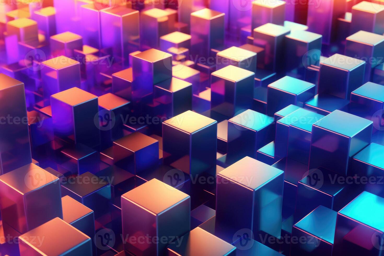 Cubes with neon glow on dark science technology background. Abstract background. Pro Photo
