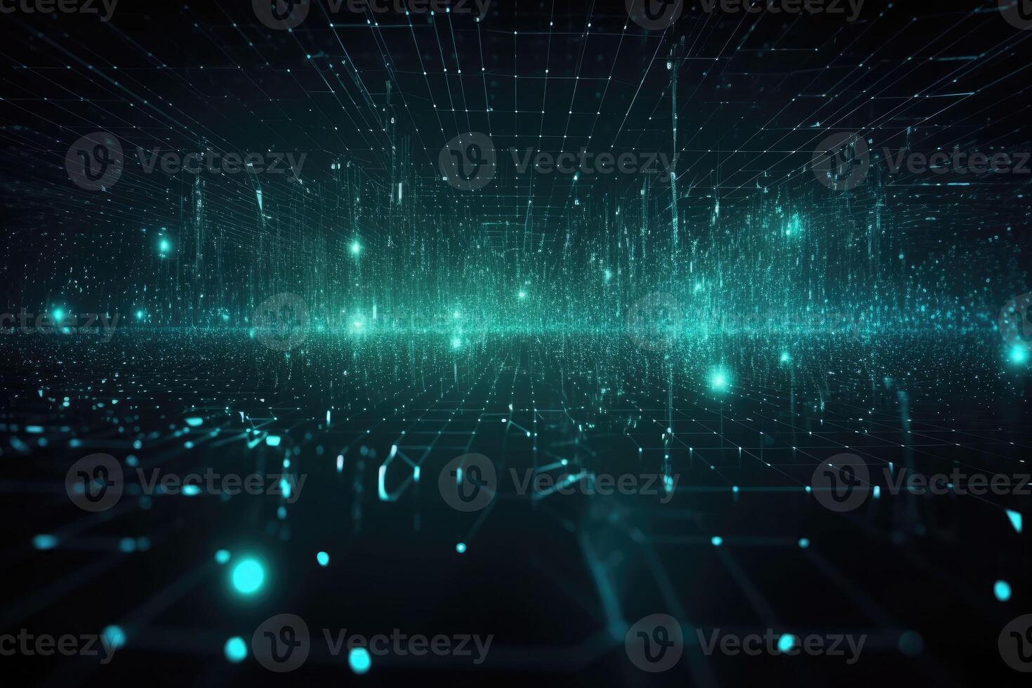 Sci-fi background of glowing particles with depth of field. Network connection. Pro Photo