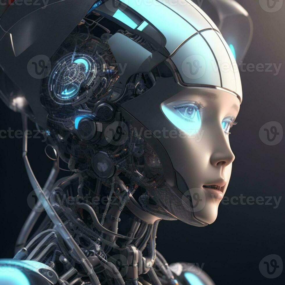 3d rendering ai created female head machine and brain for artificial intelligence technology access big data online generate by AI Pro Photo