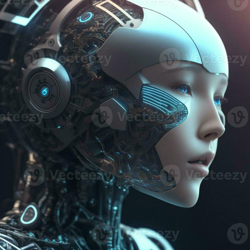 3d rendering ai created female head machine and brain for artificial intelligence technology access big data online generate by AI Pro Photo