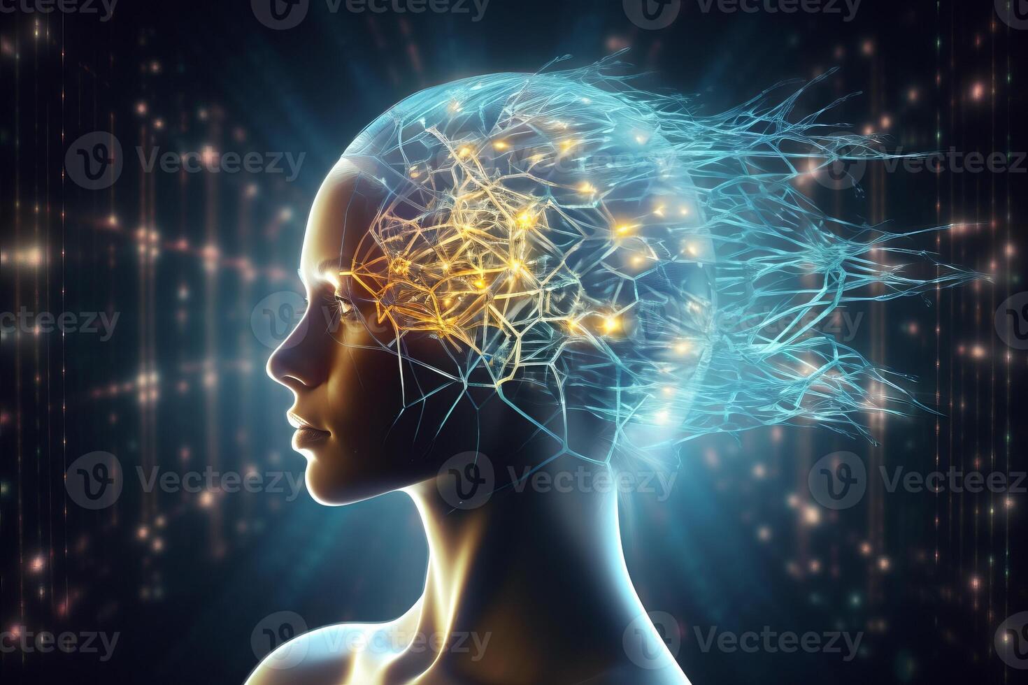Unlocking the Mysteries of the Mind Exploring the Connection Between Meditation, Esotericism, and the Glowing Neurons of the Brain, Pro Photo