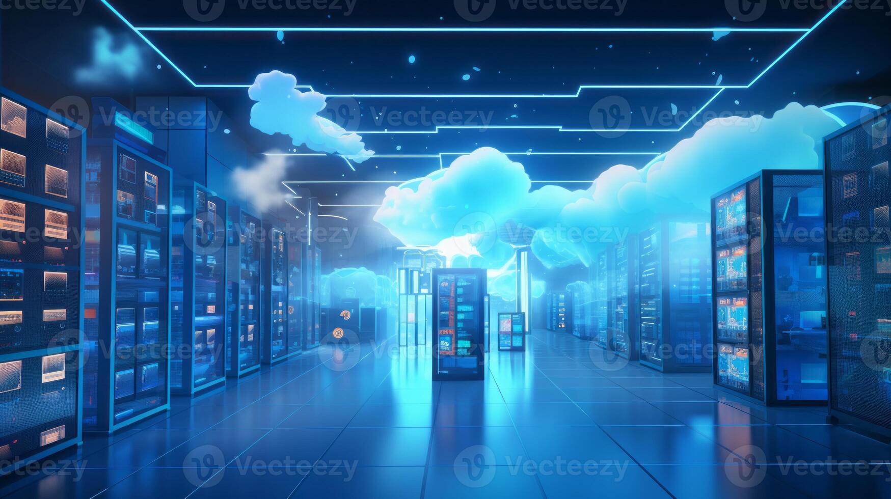 cloud computing concept art abstract, cloud server. data center organize, technology blue light room Pro Photo