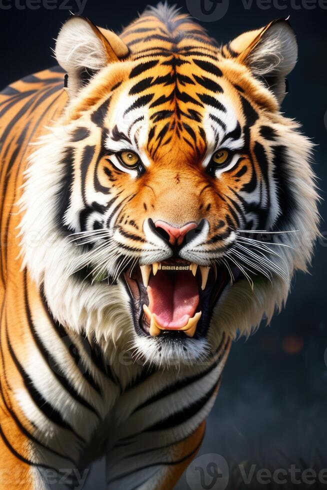 Close-up front view portrait of roaring Tiger. Pro Photo