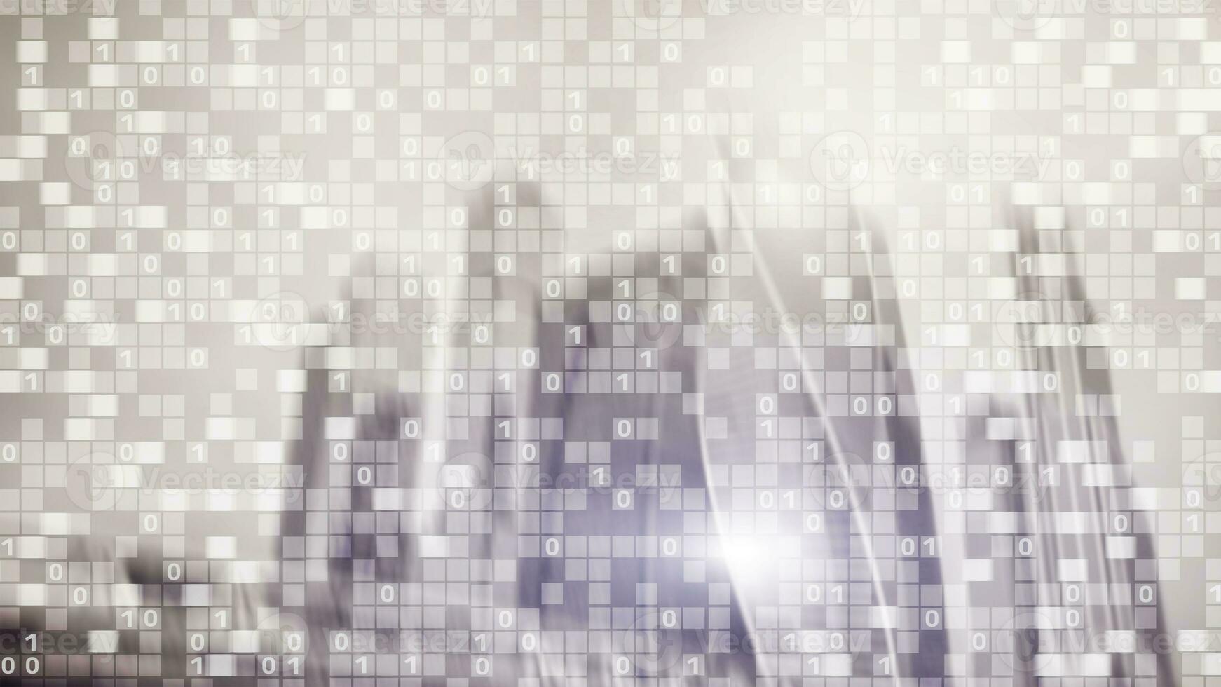 Digital code on blur city background. Abstract Binary code Pro Photo