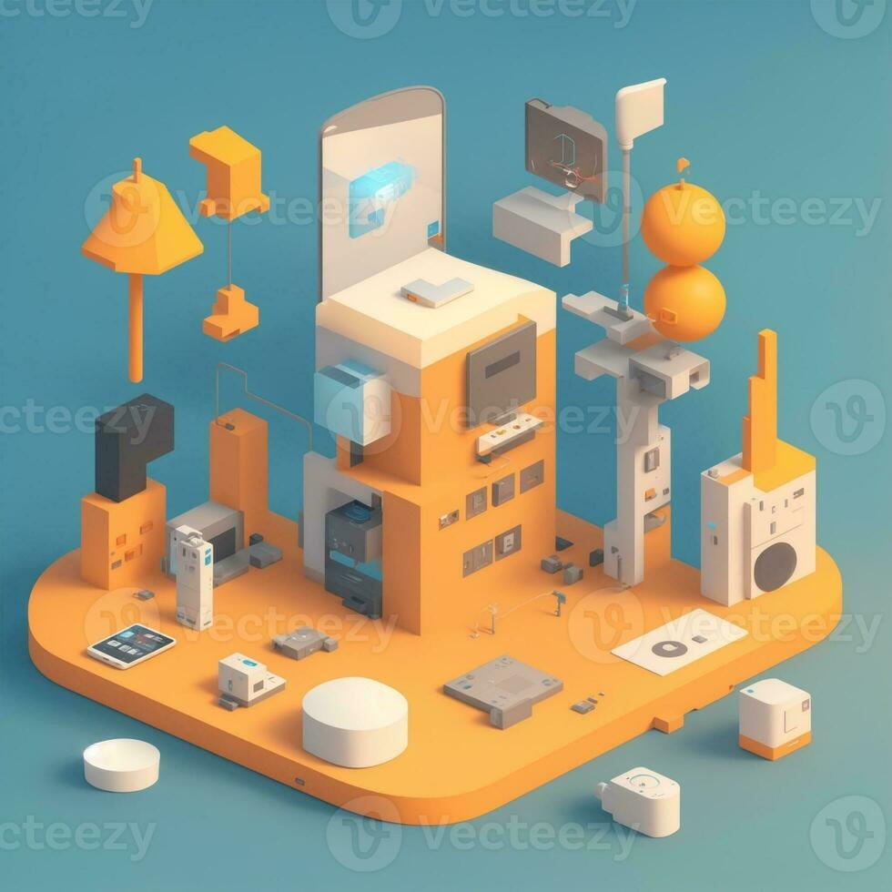 connected device, app, development, world, web development, clay rendering 3d icon, isometric Pro Photo
