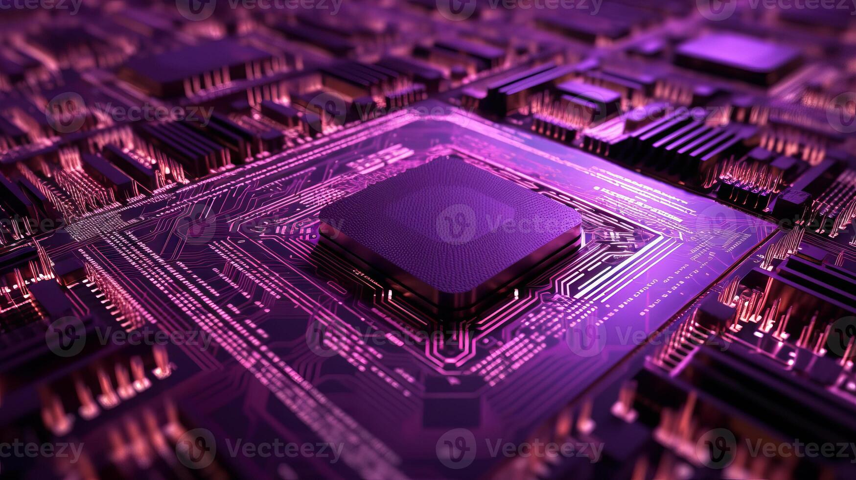 Closed up of CPU on the circuit board with purple lighting. Technology, innovation and future concept., Pro Photo