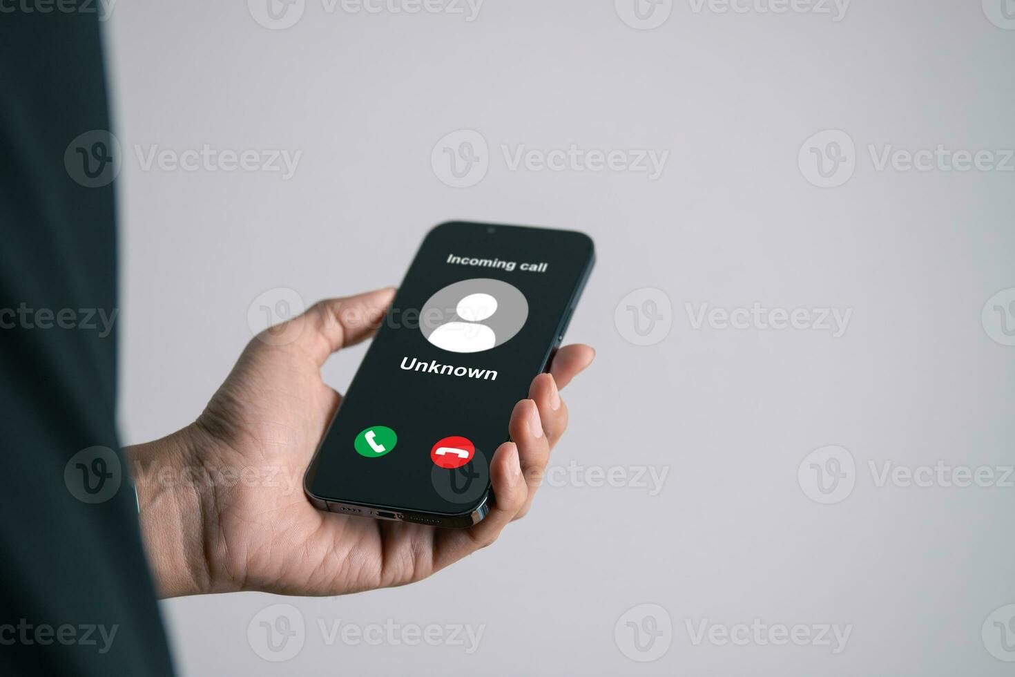 Data Security system concept, Businessman received calling from unknown person, innovation technology, cloud computing, internet network communication Pro Photo