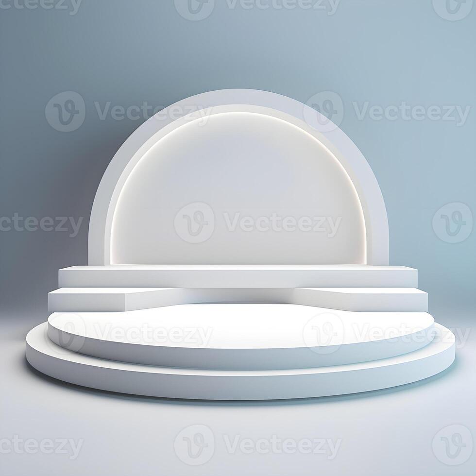 3d render, abstract scene with white round podium for product presentation. Illustration. Podium for product shoot. Minimal Display for product. Pro Photo