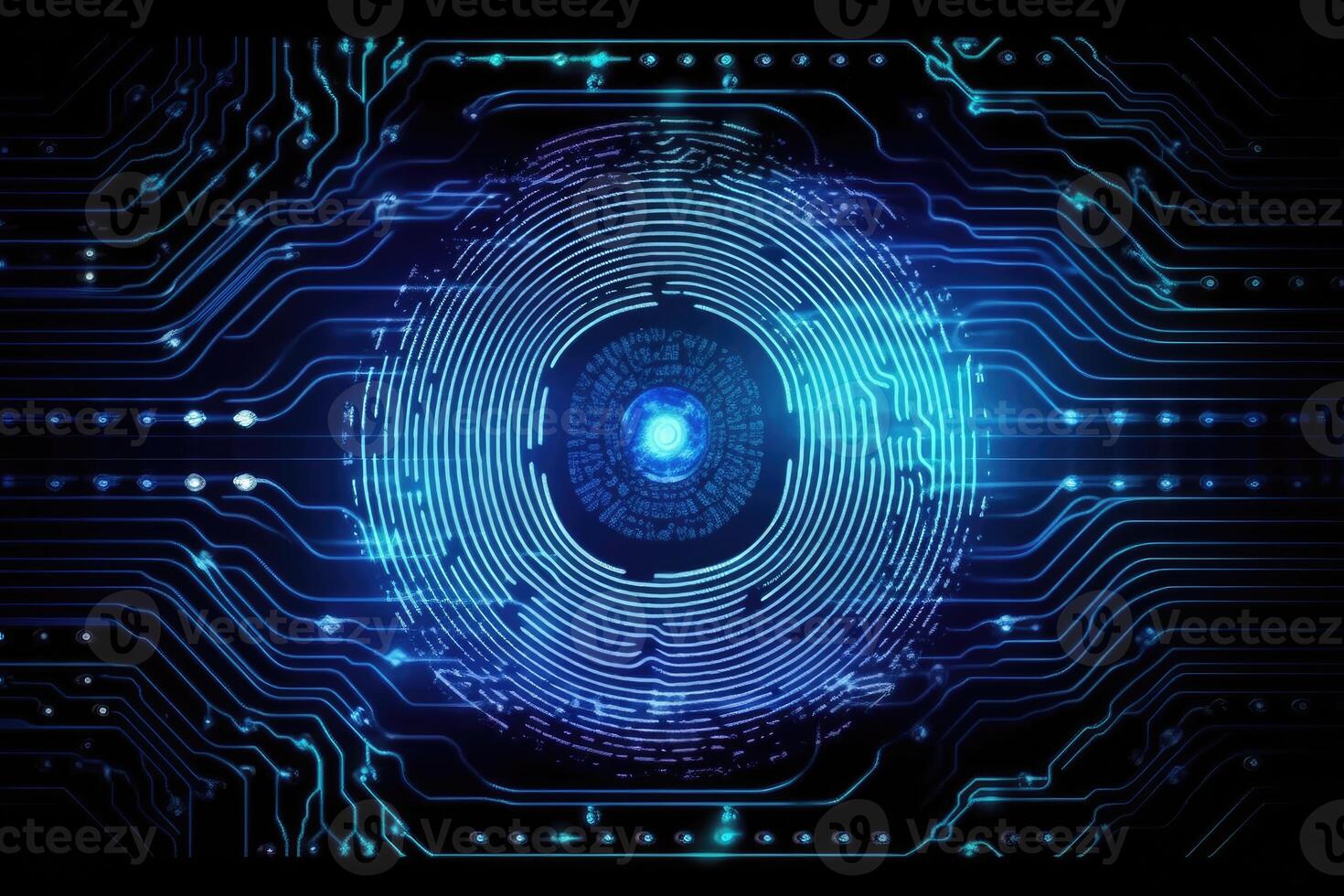 Advanced security technology, neon light background with fingerprint sensor. Pro Photo