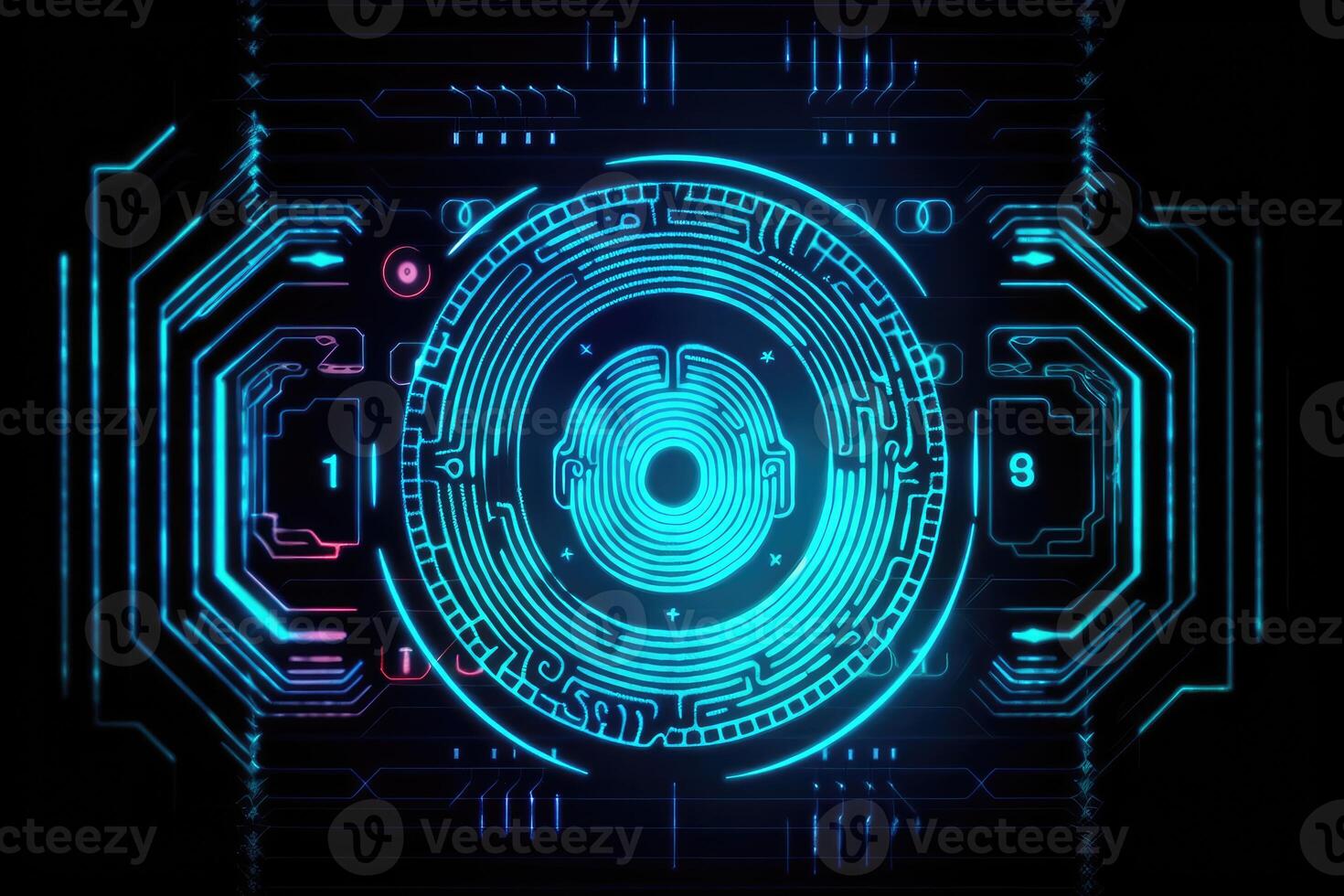 Advanced security technology, neon light background with fingerprint sensor. Pro Photo