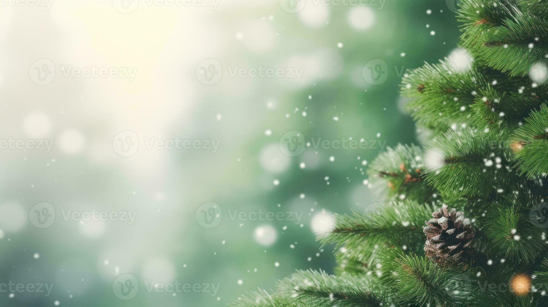 Close-Up of Christmas Tree Garland Greenery with Blurred Background and Bokeh. AI Generated Pro Photo