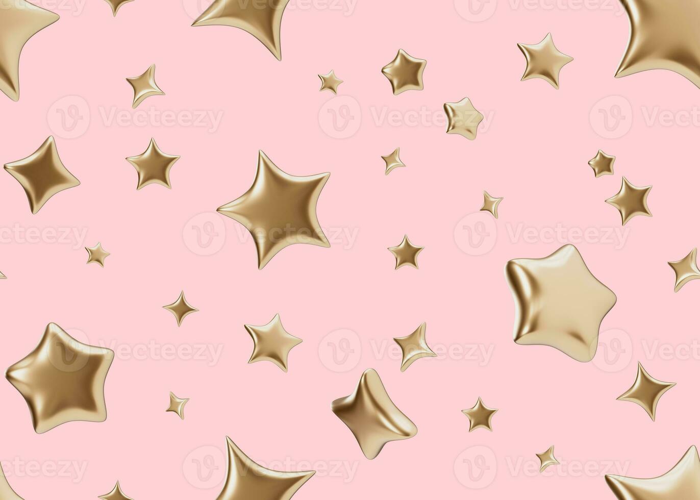 Seamless pattern with golden 3D stars on pink background. Applicable for fabric print, textile, wallpaper, wrapping paper. Repeatable texture. Modern style, pattern for bedding, clothes. 3D render. Pro Photo