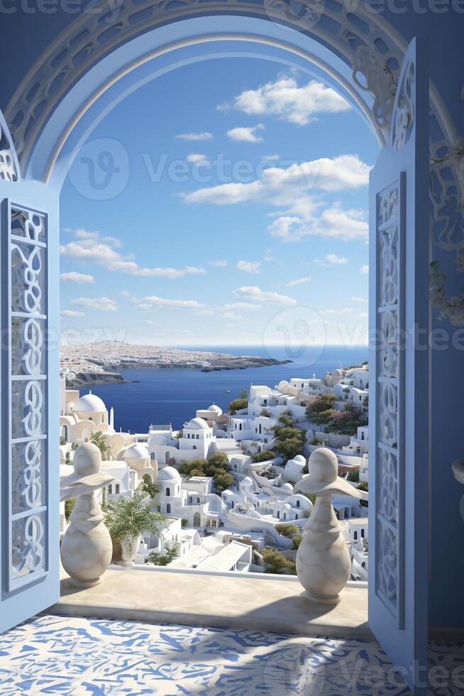 Open window with a view to a beautiful Greek scenery, created with Pro Photo