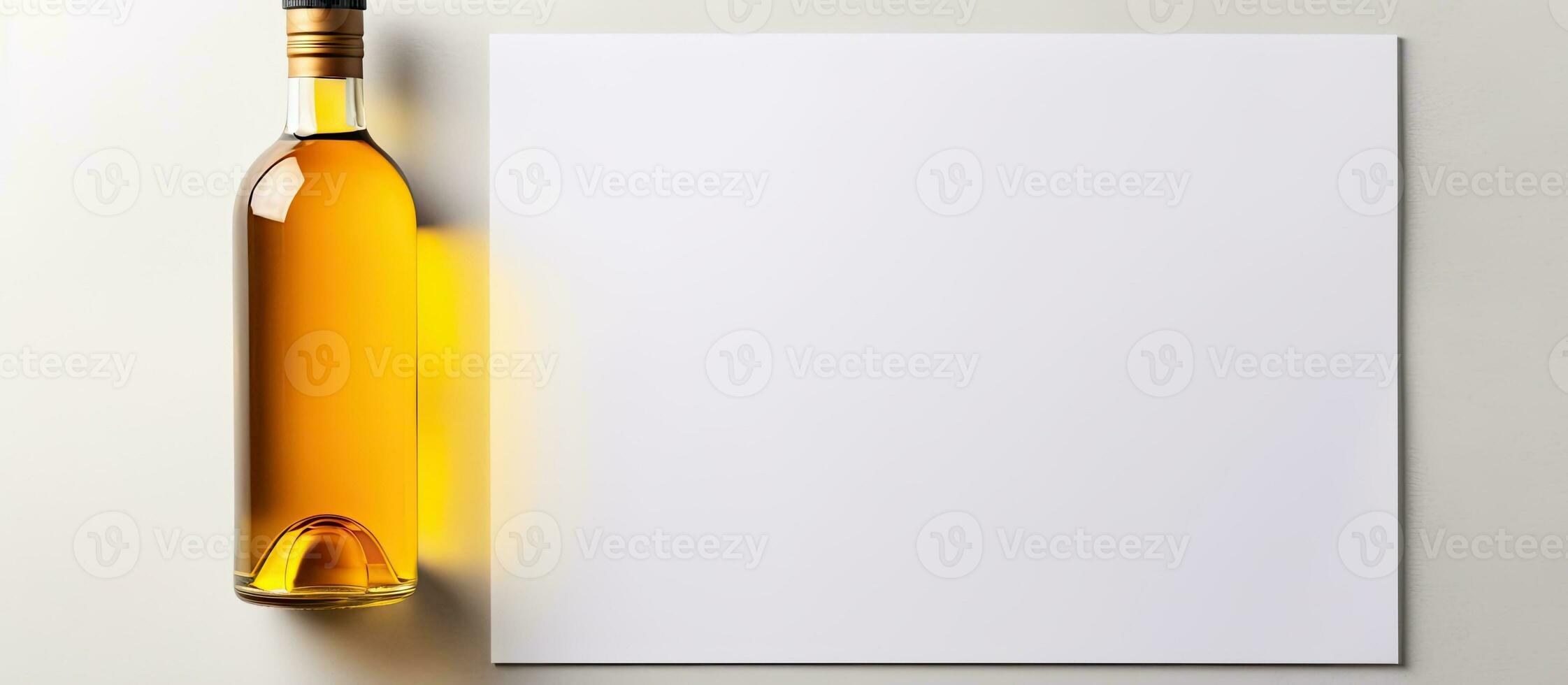 Photo of a wine bottle next to a blank paper, perfect for adding your own message or label with copy space Pro Photo