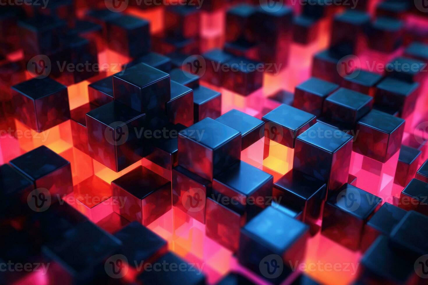 Cubes with neon glow on dark science technology background. Abstract background. Generative AI Pro Photo