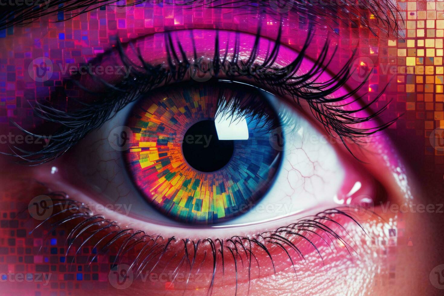 Close up of binary code reflected in the eye. Generative AI Pro Photo